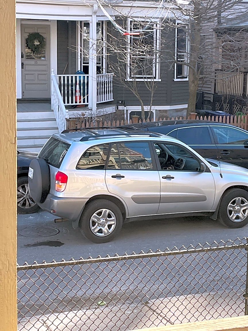 100 Mount Pleasant Ave, Roxbury, Ma, 02119Illegally parked in front of yard with no curb cut behind it.