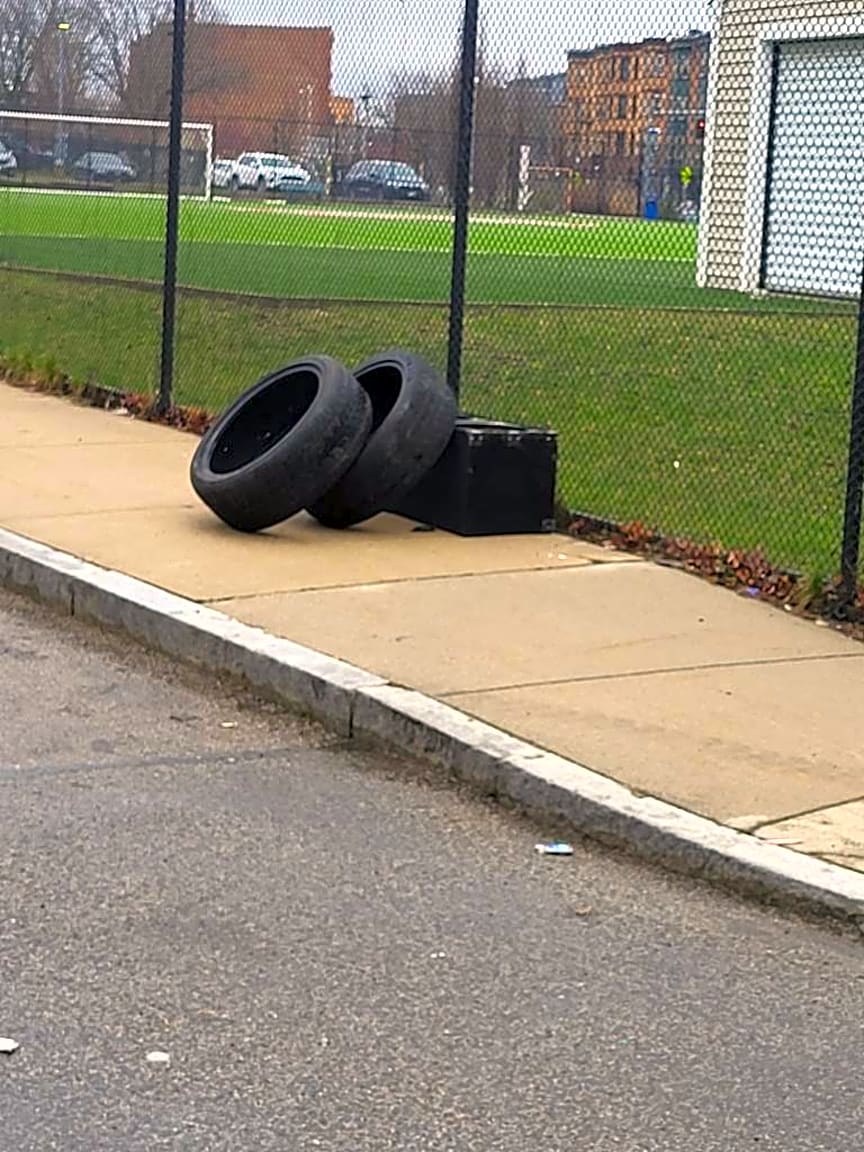 Intersection Of Woodford St And Magnolia St, Dorchester, MaTires and debris