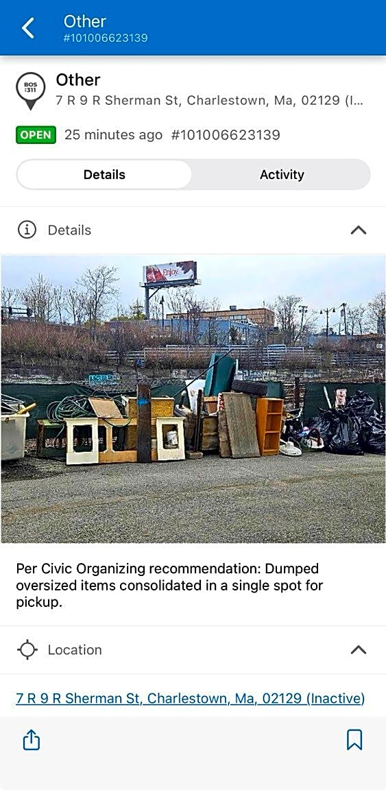 Intersection Of Austin St And New Rutherford Ave, Charlestown, MaSo people can just dump their junk in some vacant lot at this address and the city takes it away? Is that true?