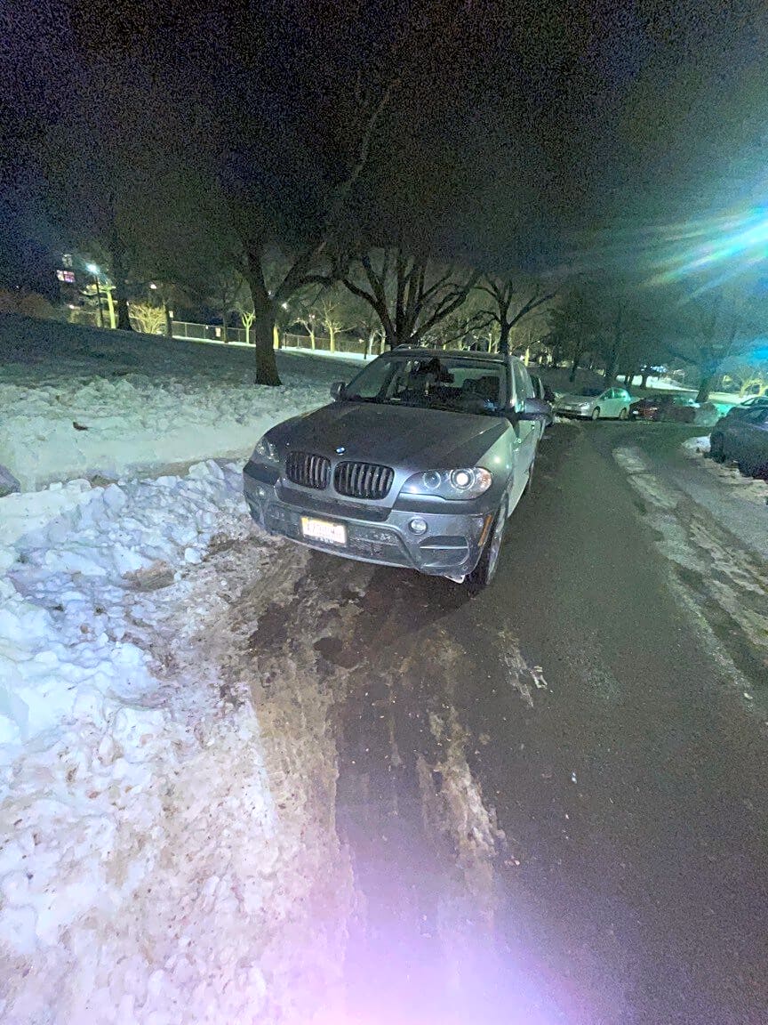 Intersection Of Rosemary St And Spalding St, Jamaica Plain, MaCar parked in residential parking. Blocking driveway in in the road