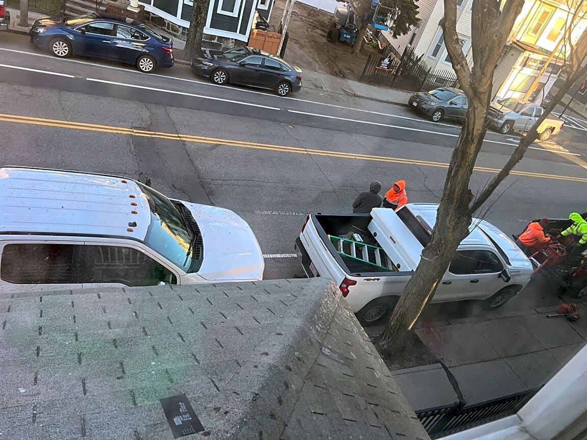 794 798 Dorchester Ave, Dorchester, Ma, 02125Construction at 783 Dorchester Ave. they have 3 pickup trucks parked across the street in resident parking and put orange cones out from 796 to Locust St. no permits posted and they have a parking lot along side of house.