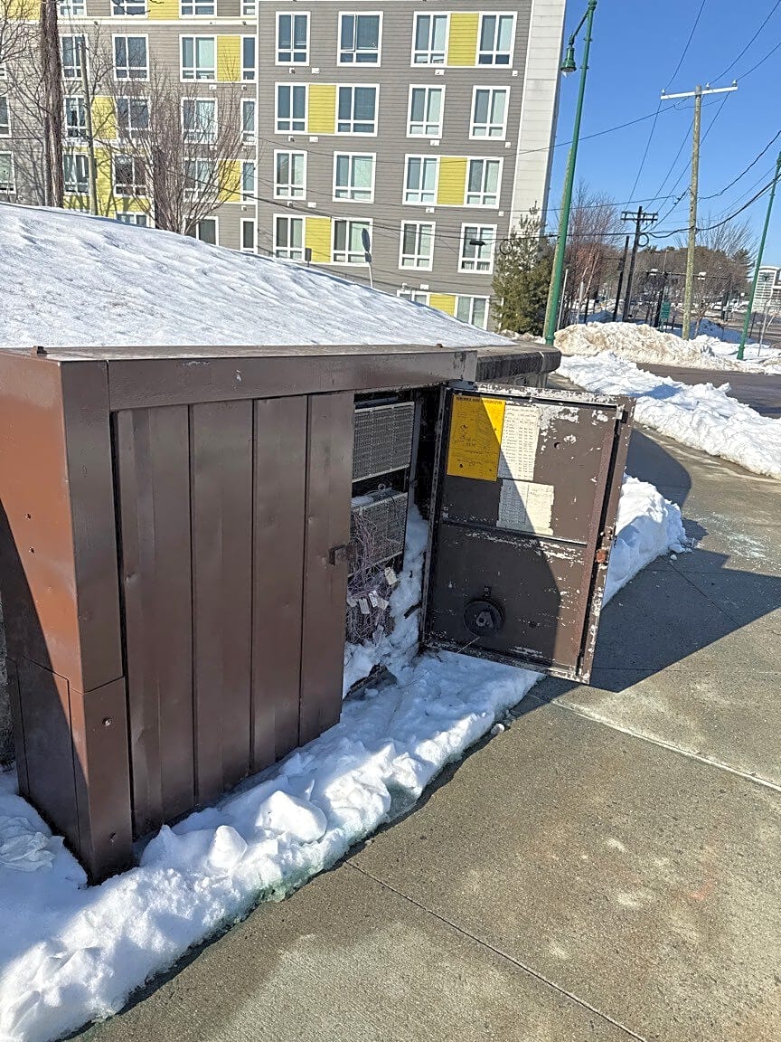 Intersection Of Morton St And Arborway, Jamaica Plain, MaElectric Box lock, broken and wide open
