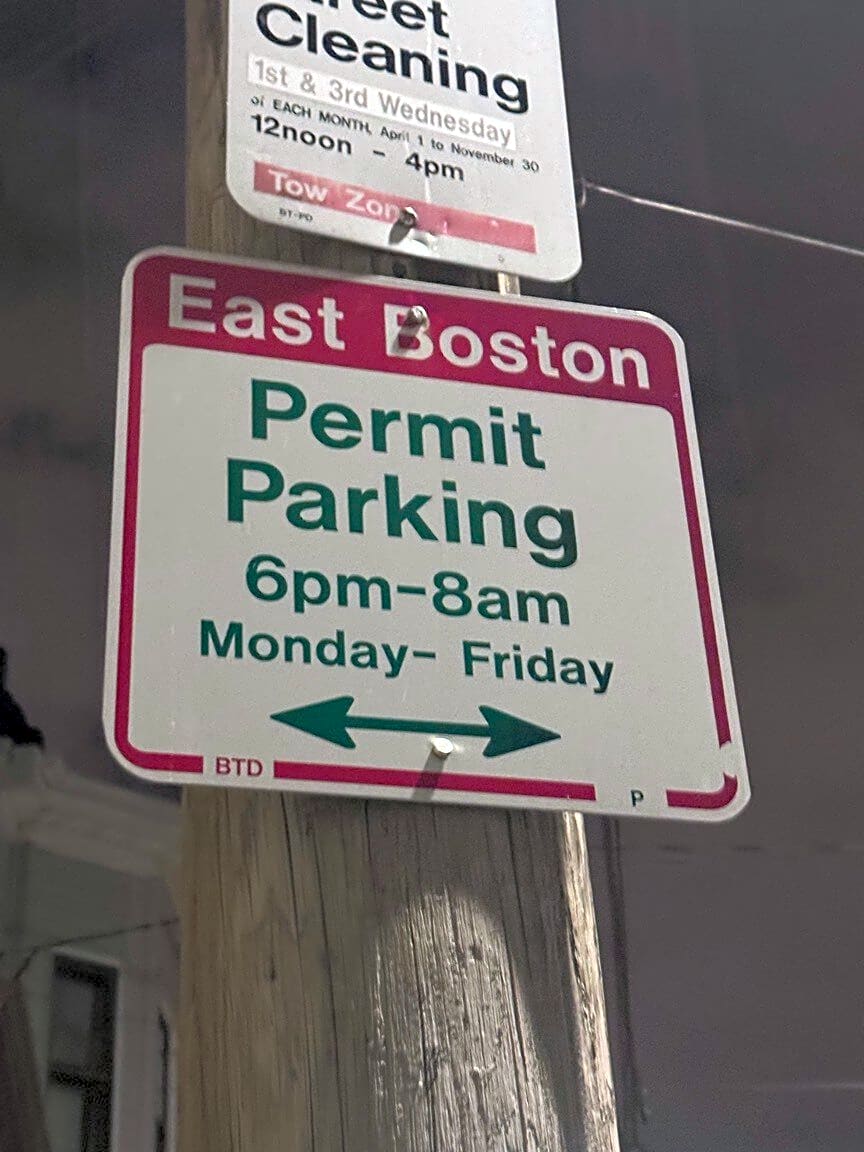 White pick left for overnight parking, has no east Boston permit, permit needed for overnight parking