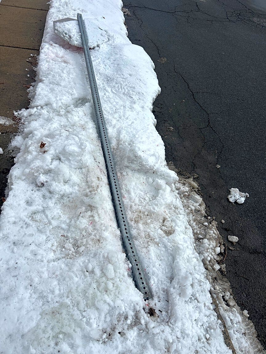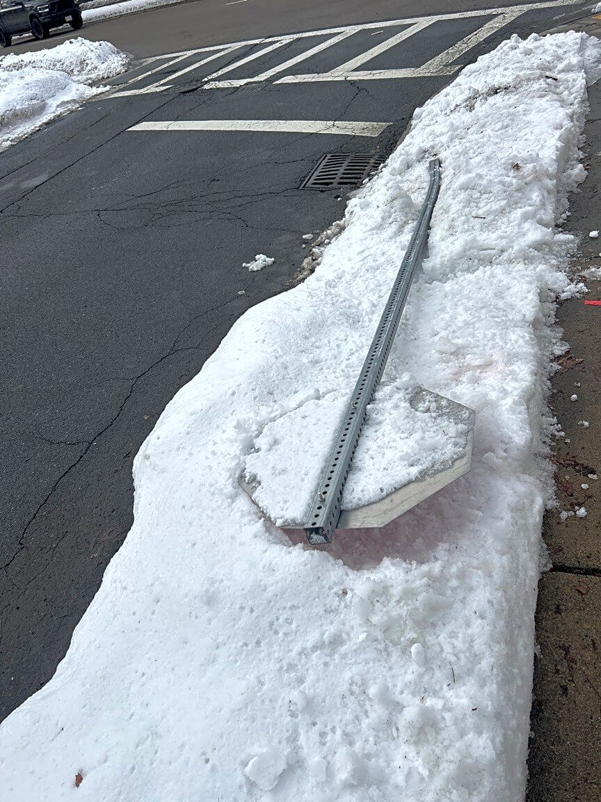Intersection Of Cranmore Rd And Truman Pkwy, Hyde Park, MaStop sign down
