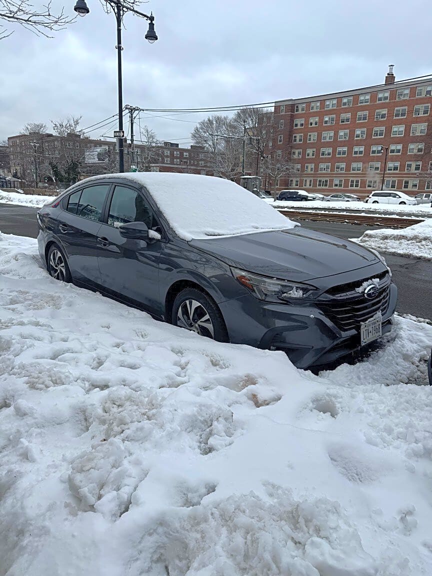 Intersection Of Melvin Ave And Commonwealth Ave, Brighton, MaOut of state car illegally parked in permit only spot since before the first snow storm. New York plates LTV1968