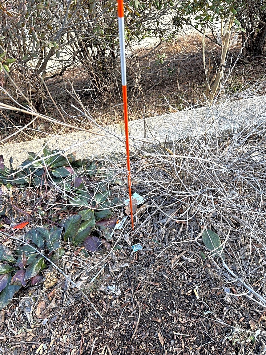 Intersection Of Claremont St And Wellington St, Roxbury, Matwo needles IV drug abuse debris on the southwest corridor at the end of wellington st and marked by an orange stake