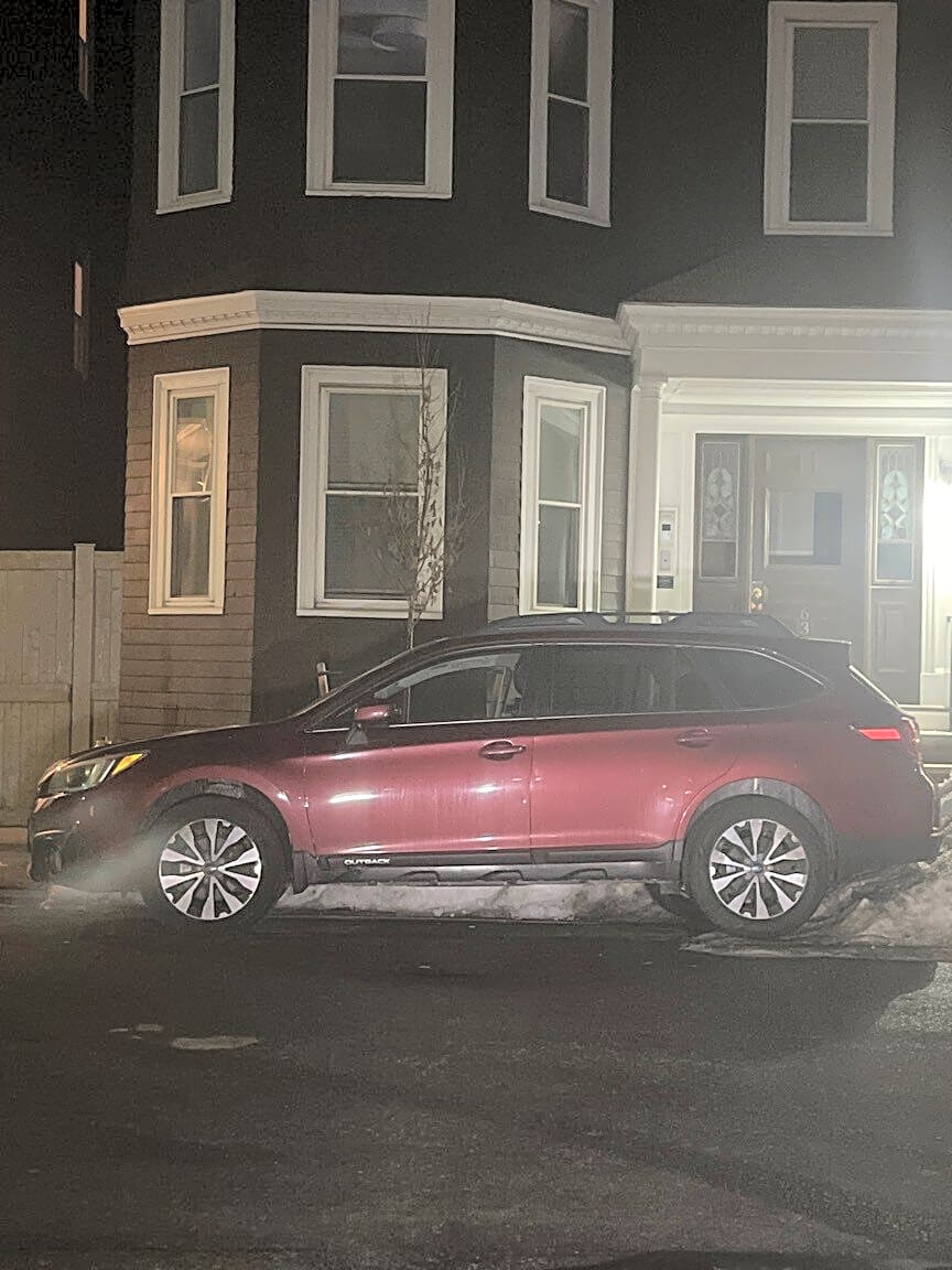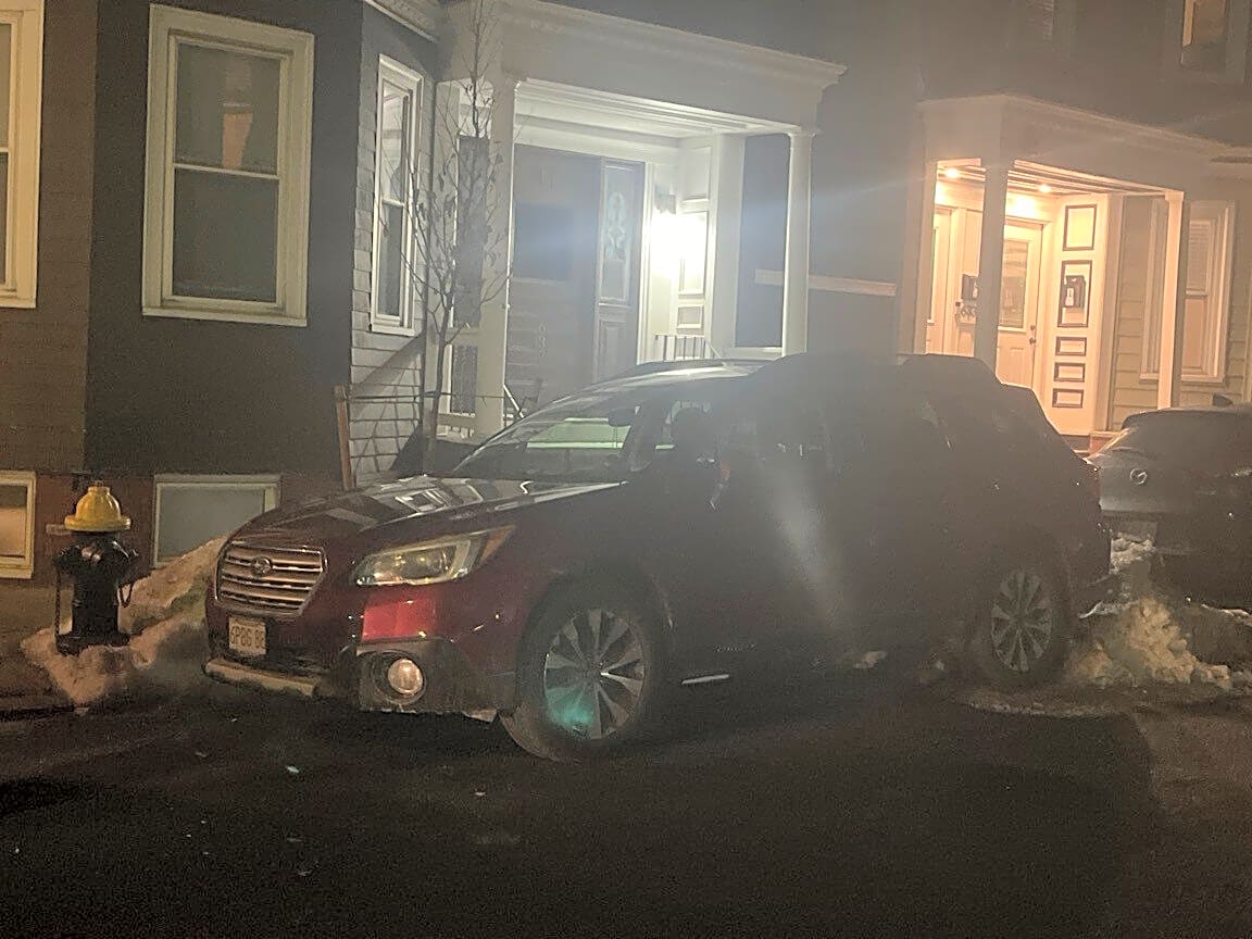 637 E Eighth St, South Boston, Ma, 02127Red Subaru parked directly on fire hydrant. Come ticket and tow.