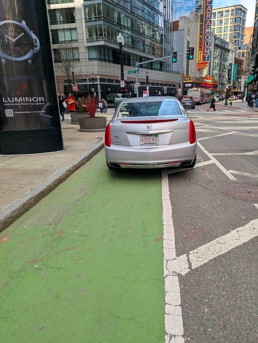 685 687 Washington St, Boston, Ma, 02116Driver blocking the unprotected bike lane