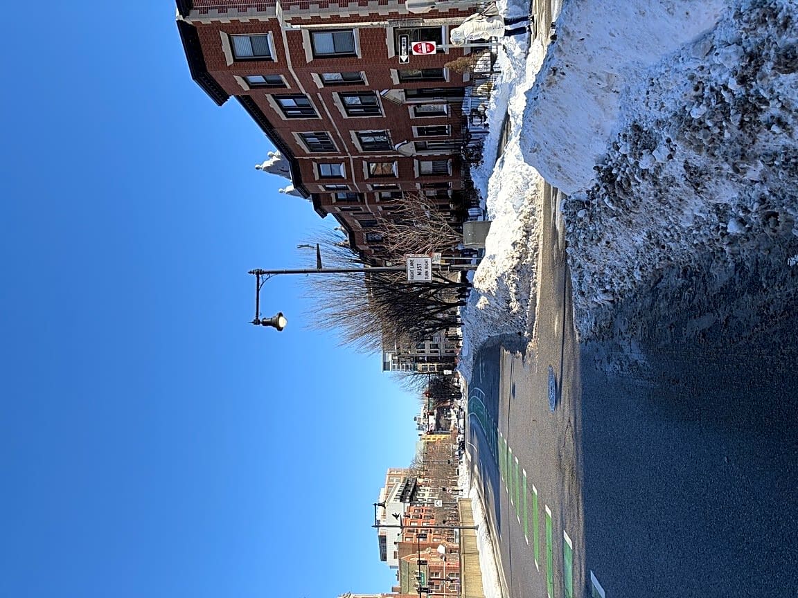 Intersection Of Keswick St And Beacon St, Boston, MaSnow plowing needed for parking spaces on Beacon St, specifically the Fenway-Kenmore resident parking, 901-923 Beacon St. Fire hydrant is also covered near 915 Beacon St and Keswick St.