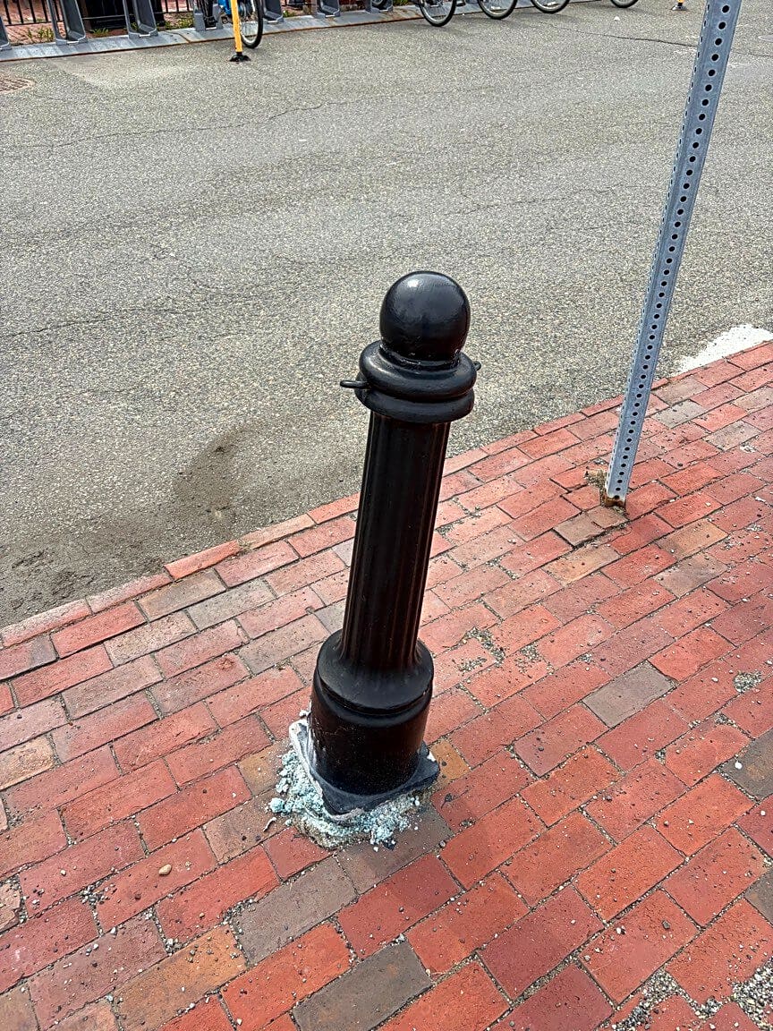 Intersection Of Baxter Rd And Fifth St And First Ave, Charlestown, MaBollard is loose