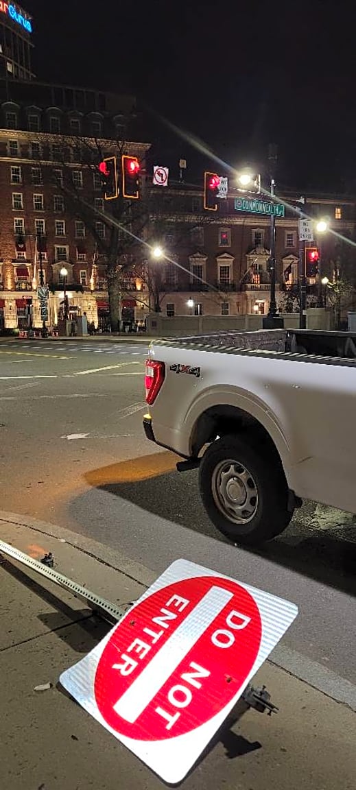Knocked out sign, at commonwealth Ave, on Massachusetts Avenue.