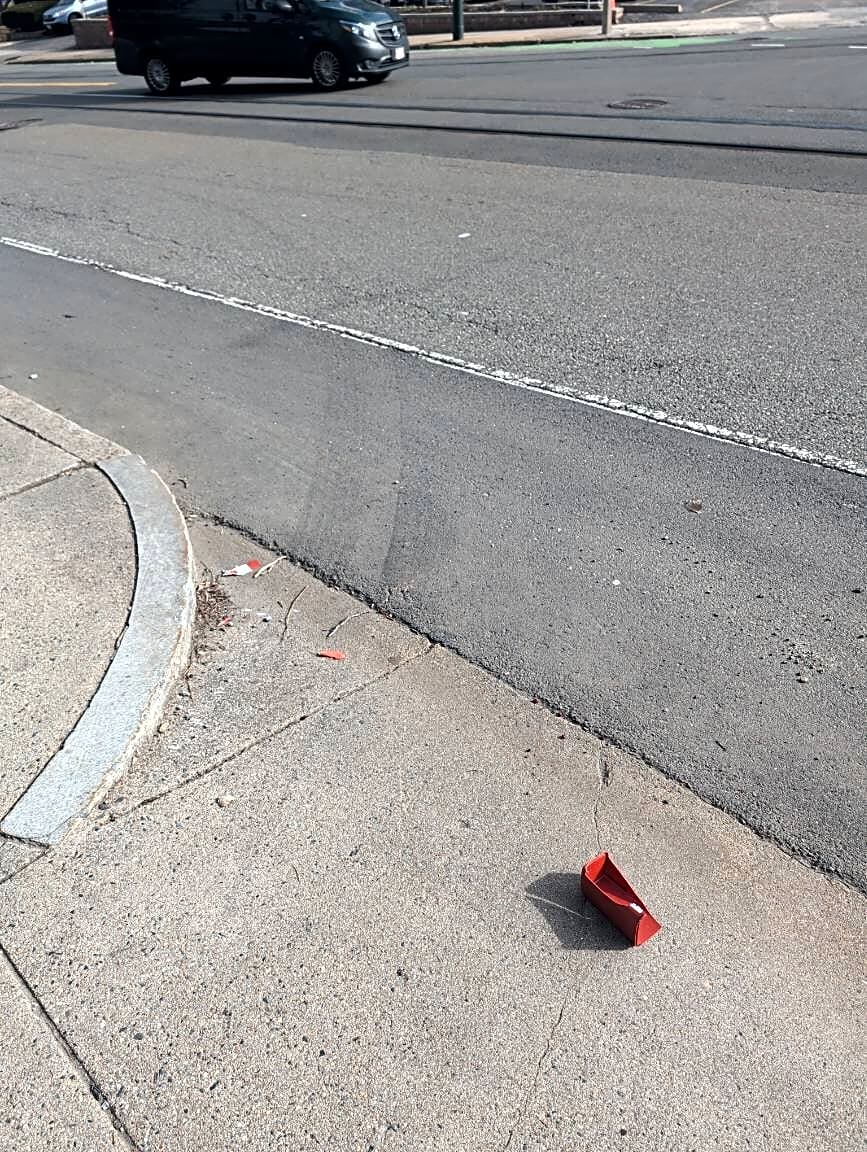 Intersection Of S Huntington Ave And Heath St, Jamaica Plain, MaBiohazard box in street