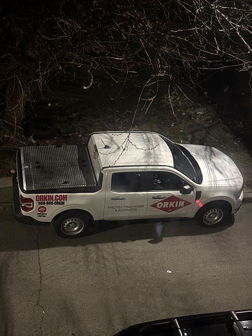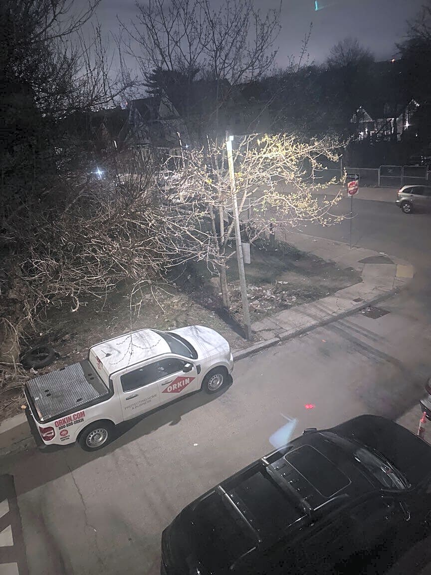111 Magnolia St, Dorchester, Ma, 02125Orkin pest control commercial vehicle blocking traffic park on side walk
