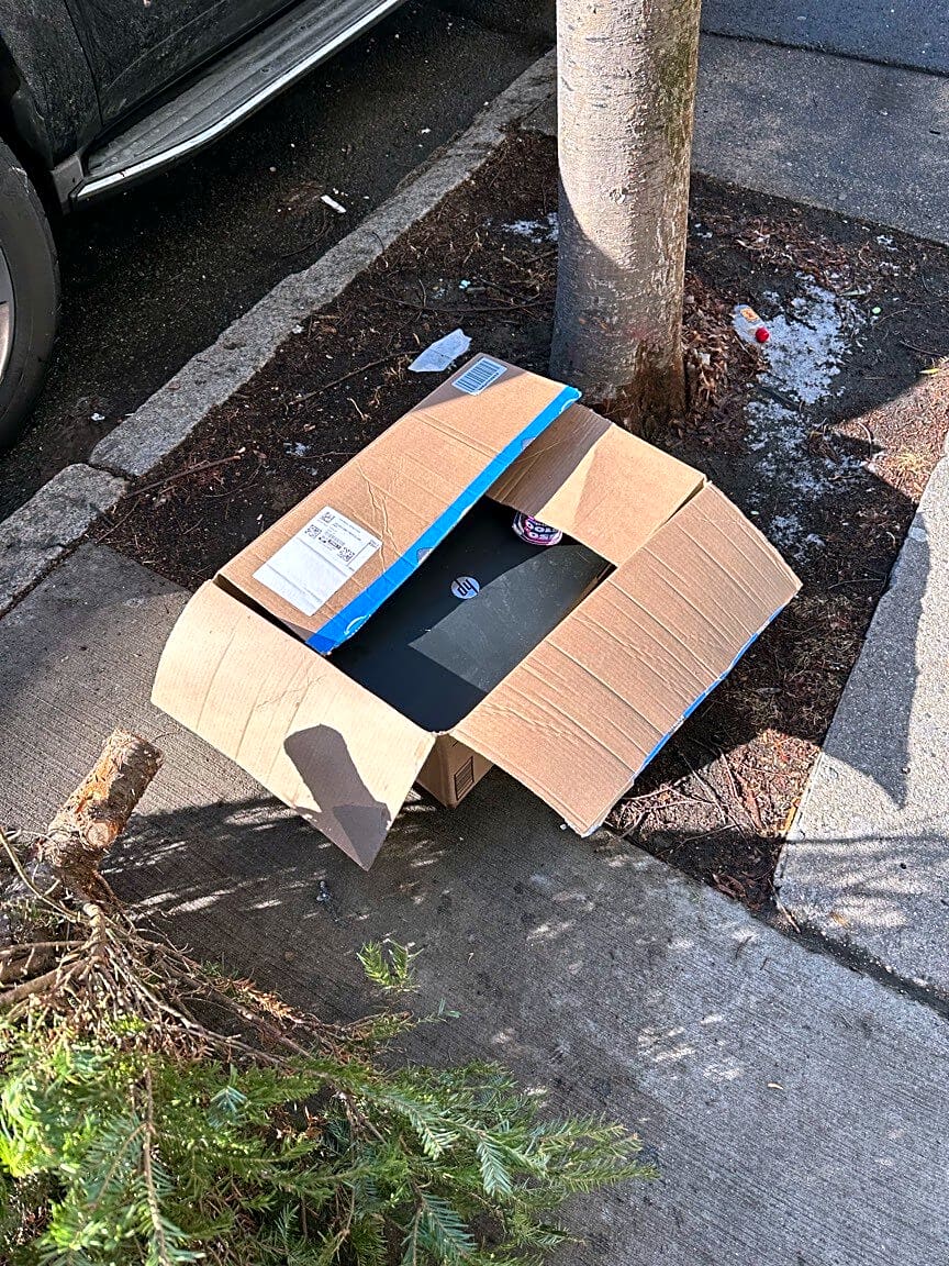 272 Sumner St, East Boston, Ma, 02128A computer scanner in a box dumped on the sidewalk. Address on the box is not from around here. Could the city please remove. Thanks