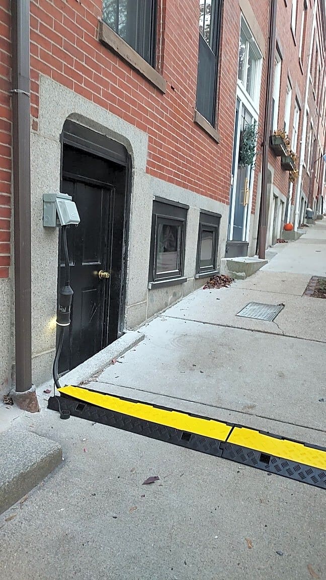 107 Baldwin St, Charlestown, Ma, 02129Electric car charging port was installed and cord is being run across a public sidewalk