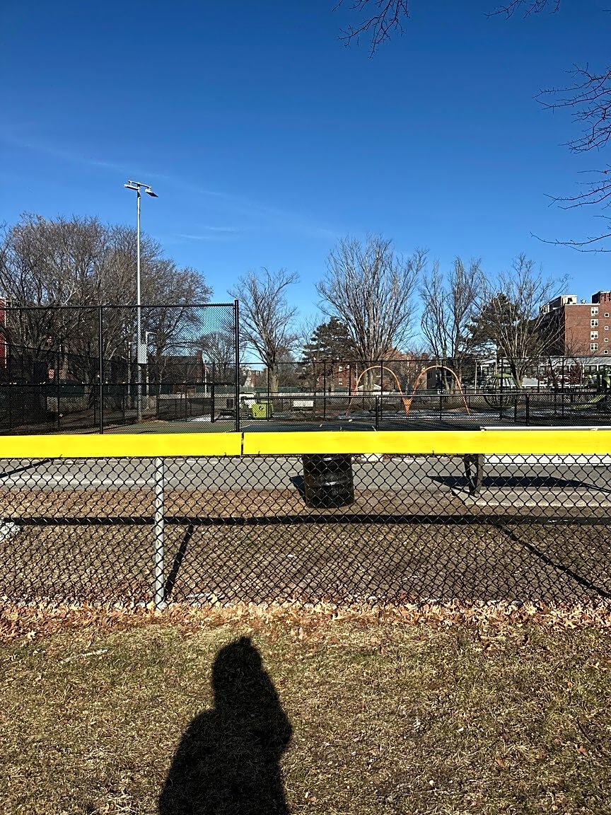Needles, capped and uncapped, on Jim rice Field. 4 in total. Directly across from tennis court, close to trash can and large tree