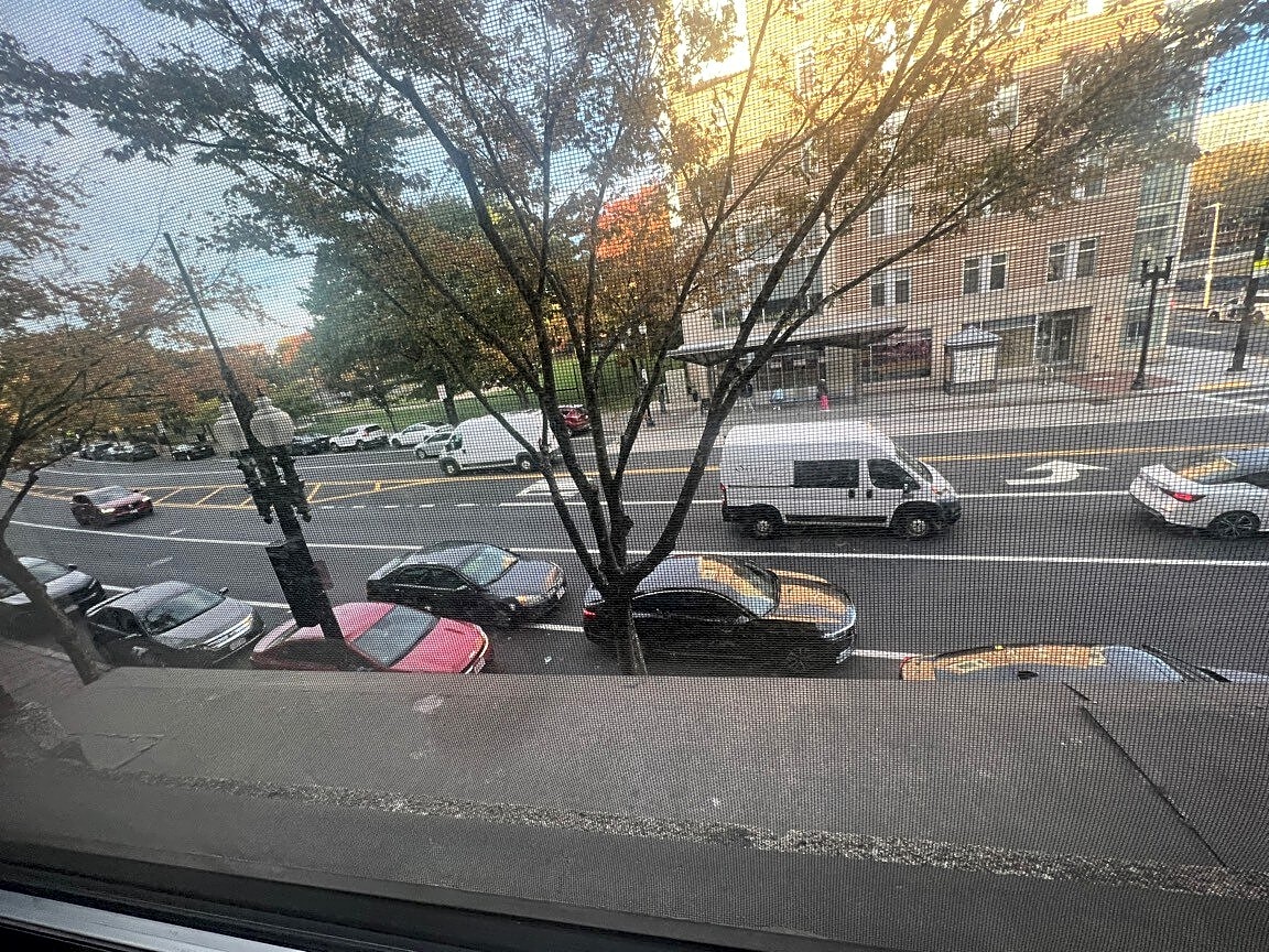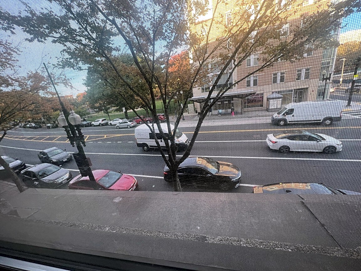 Illegally double parked inbound and outbound sides of Washington St