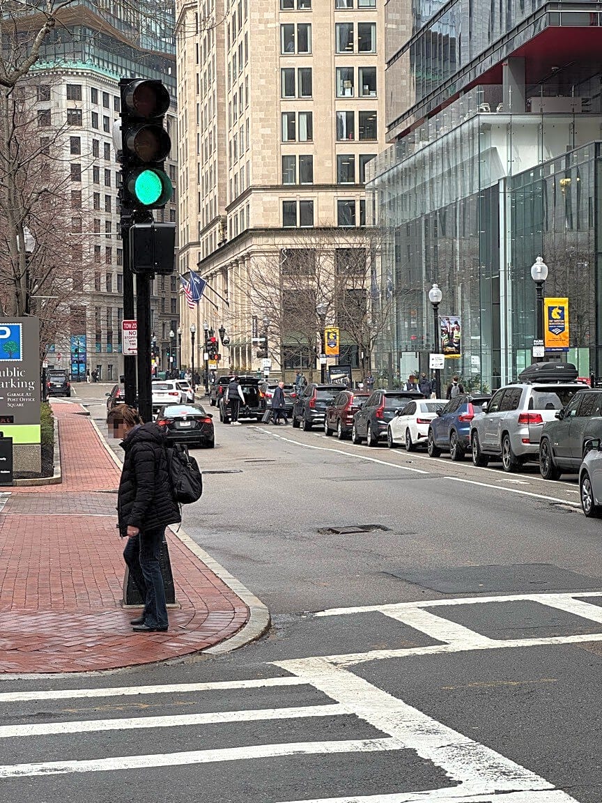 6 Pearl St, Boston, Ma, 02109Cars in bike lane on Pearl between Franklin and Milk