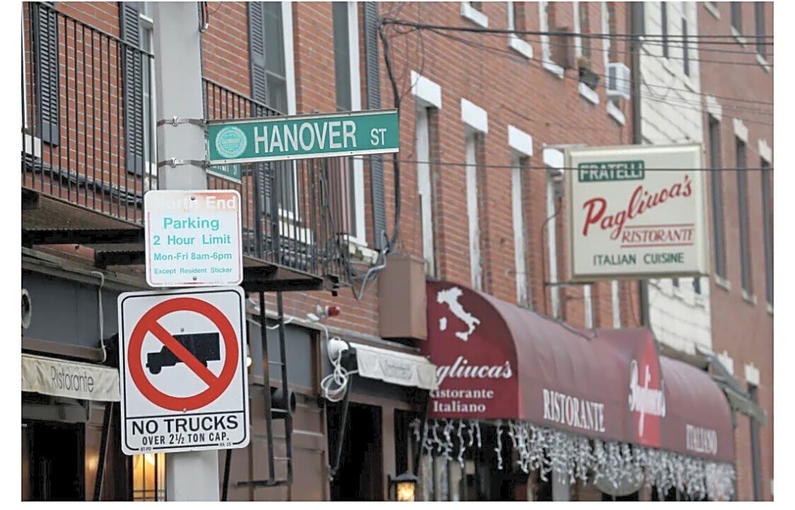 Intersection Of Kingston St And Essex St, Boston, MaHello! Our street could benefit from one of these No Trucks & Buses signs. The ones I’ve attached are on Hanover street in the north end, mt. Vernon street in beacon hill and east broadway in south boston. Our street is similar to these, it has a very narrow curve that is not wide enough for trucks and buses to make without running over our sidewalk and it’s killed two of our trees. We have two requests: keep trucks and buses off this street AND replace the two trees - tree pits are still there on the curve of the street. Thank you!