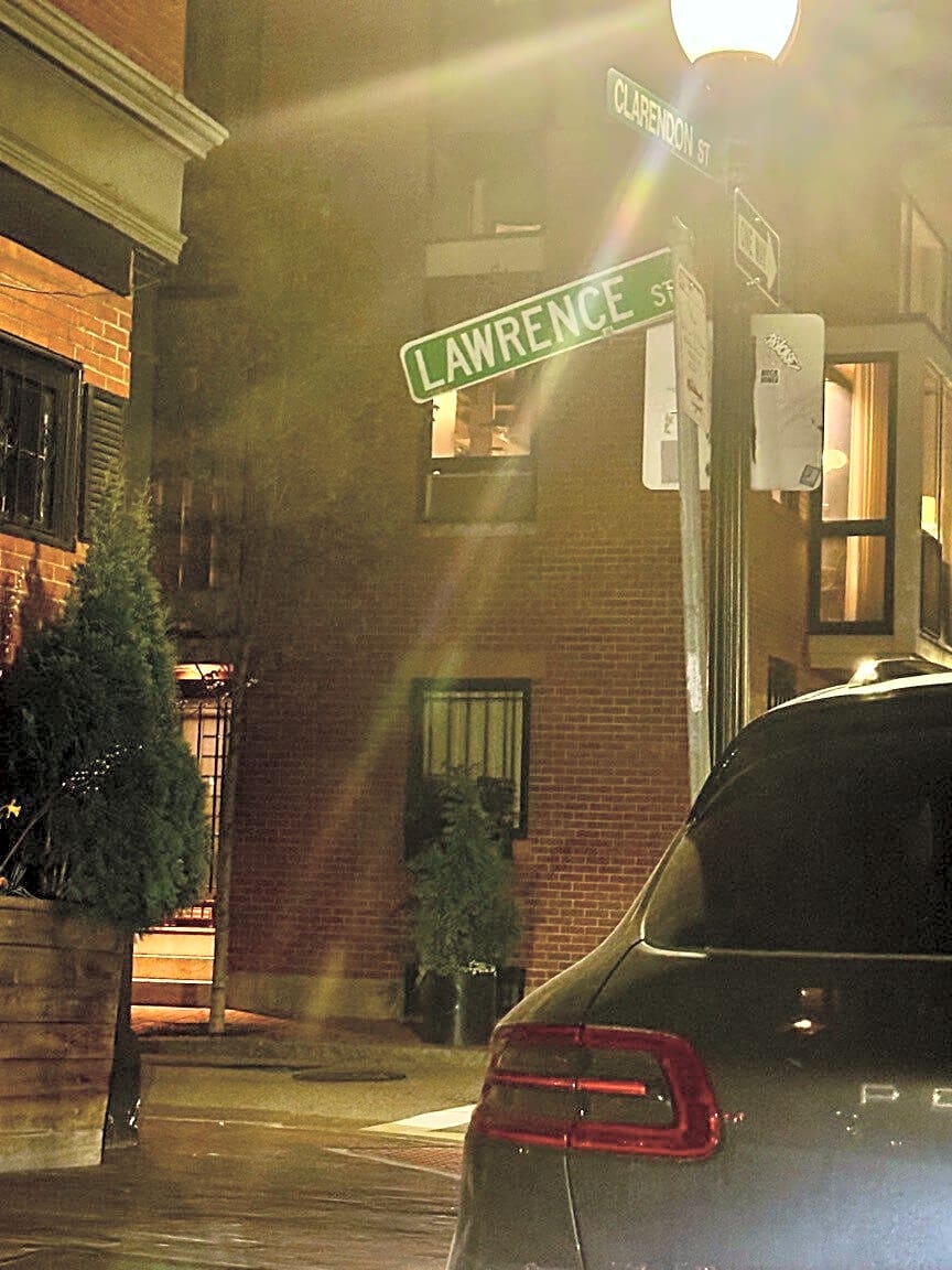 Intersection Of Lawrence St And Clarendon St, Boston, MaLawrence street sign bent down needs fixing corner of Clarendon and Lawrence just behind Delux