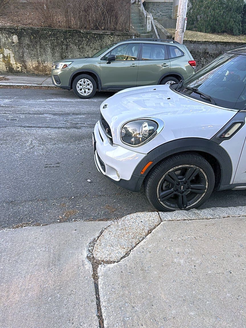 36 38 Langley Rd, Brighton, Ma, 02135Car parked over curb of driveway making it super difficult to get out of driveway
