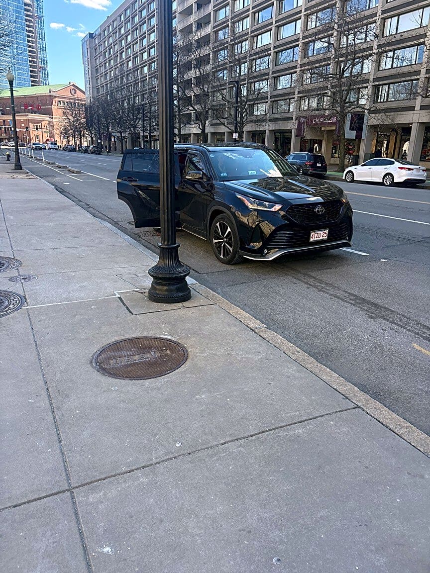 Intersection Of Boylston St And Charles St, Boston, MaRight hand land at the intersection of Charles and Boylston damaged vehicle | Where exactly on the pavement is the pothole: [On Roadway] What is the approximate size of the pothole: [6"x6"] Date when pothole noticed: [03/24/2026] Time when pothole noticed: [15:30]