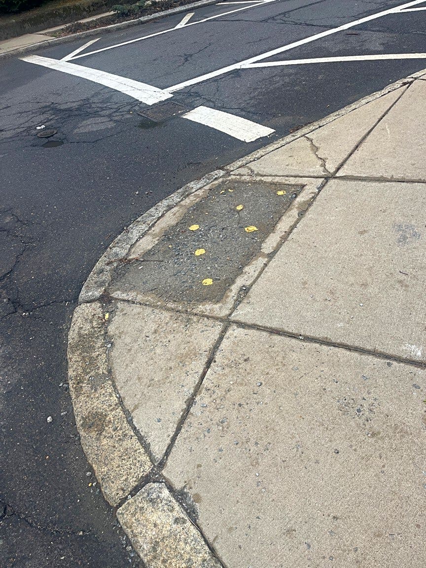 Intersection Of Lindall St And Murray Hill Rd, Roslindale, Mayellow ramp needs repairs. more urgently, broken materials need trash disposal.
