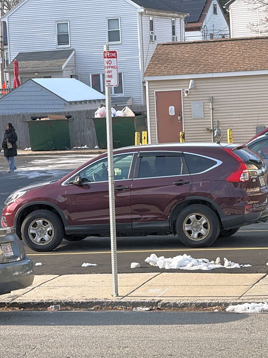 Intersection Of Piedmont St And Church St, Boston, MaCar parked illegally parked in residential parking spot
