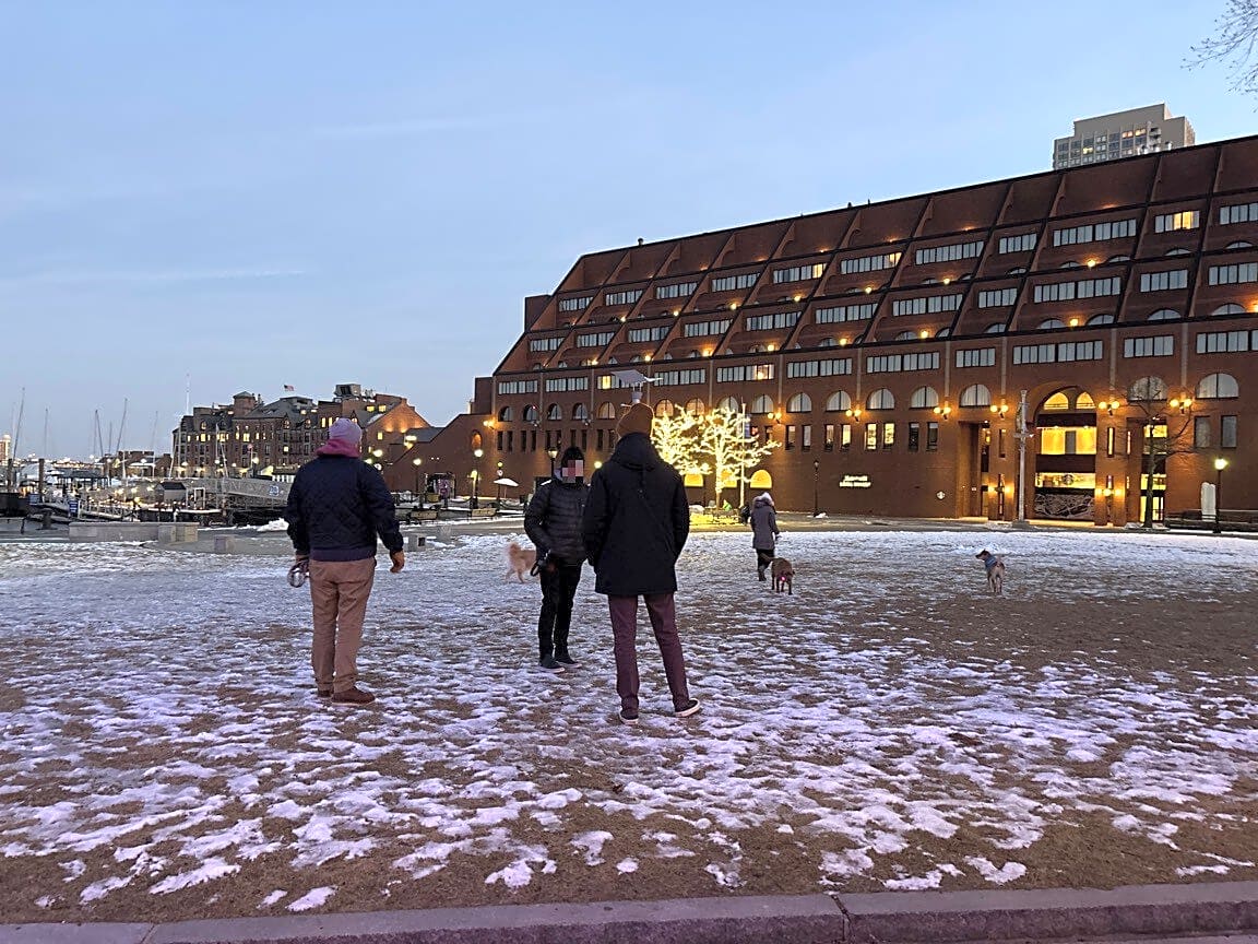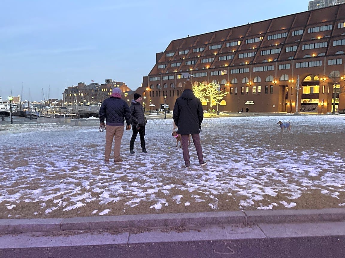 110 Atlantic Ave, Boston, Ma, 02110Multiple dogs off leash at Christopher Columbus park.