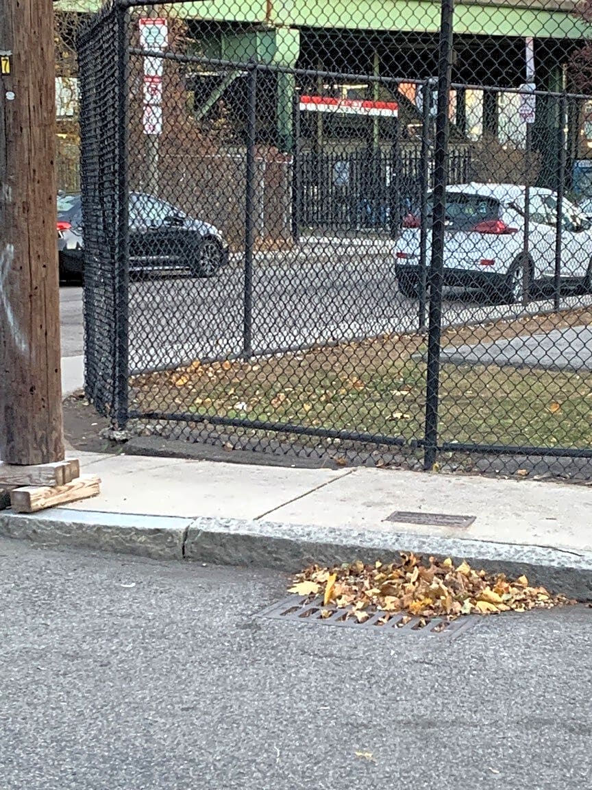 Intersection Of Carson St And Sydney St, Dorchester, MaLeaves blocking storm drain at intersection of Carson and Sydney Streets