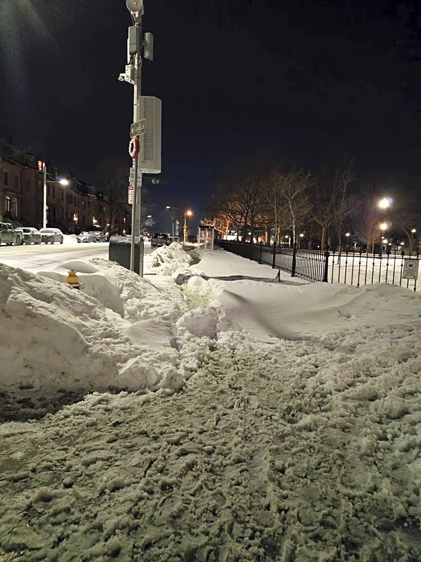 Intersection Of N St And E Broadway, South Boston, MaCity owed Sidewalk is not cleared of snow for a walking path
