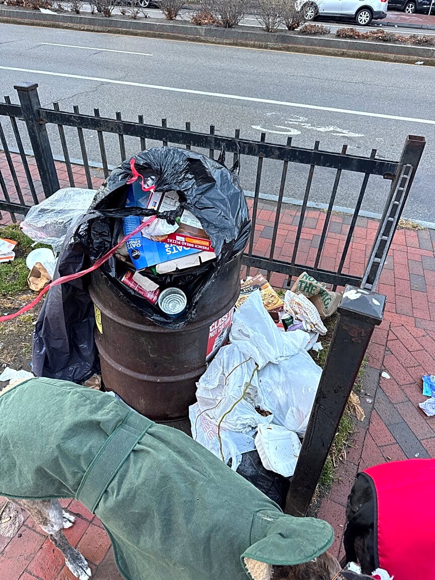 Intersection Of Massachusetts Ave And Chester Park, Roxbury, MaTrash can over flowing
