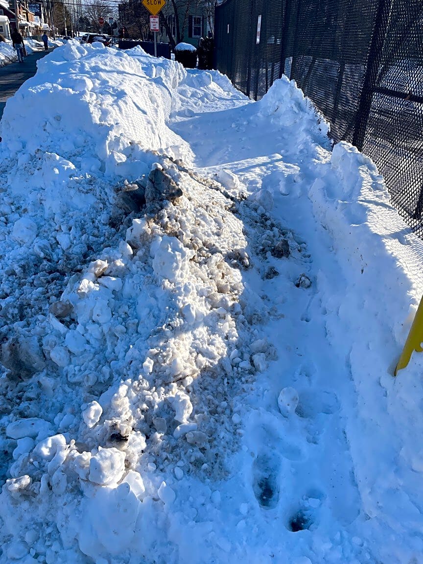 70 Windom St, Allston, Ma, 02134Sidewalk completely blocked with snow, including a giant pile