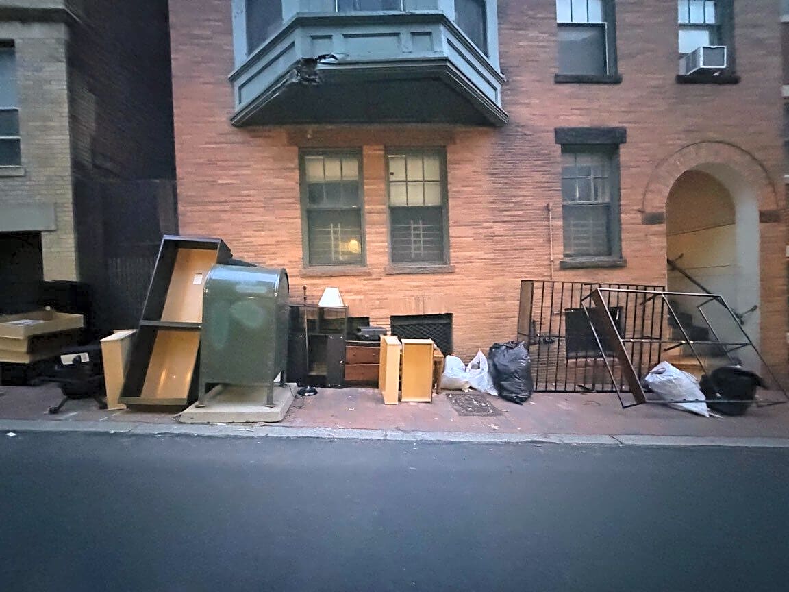 52 54 Joy St, Boston, Ma, 0211454 Joy Street. Excessive Trash and furniture in front of the building. Blocking sidewalk.