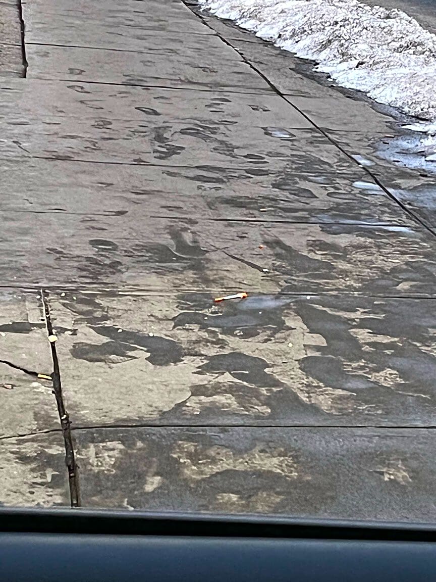Intersection Of Atkinson St And Southampton St, Roxbury, MaNeedle on sidewalk