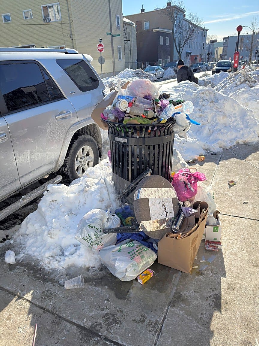 176 Saratoga St, East Boston, Ma, 02128Trash barrel at Saratoga and Brooks St overflowing. Hasn’t been emptied for over a week. Please empty and clean up ASAP. The piled up trash is starting to block the sidewalk Cc: carlos.garcia@Boston.gov