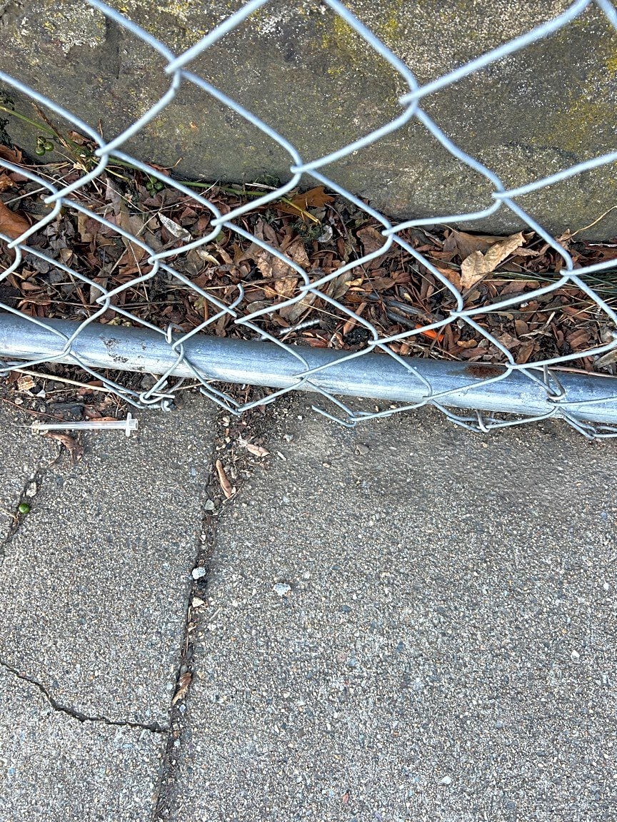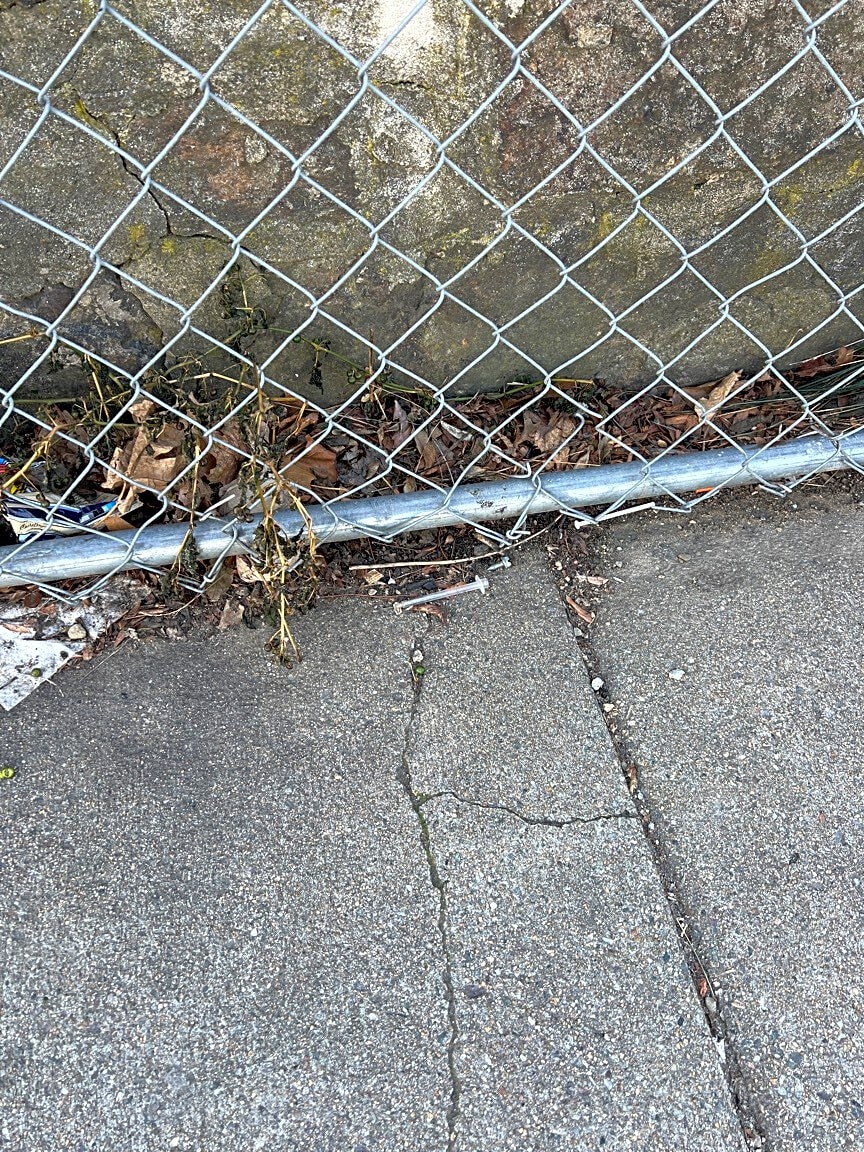 683 Columbia Rd, Dorchester, Ma, 02125On Columbia Road in front of a bird and abandoned building next to the parking lot by KFC three needles behind a fence on the sidewalk the diagonally across from the light pole