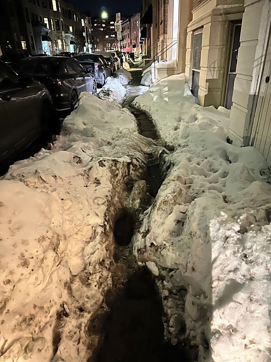 Space savers still out on Elmore Townsend Harold street around Horatio park. No parking and mounds of snow that the city has not cleaned yet. The space savers are also not only people that live along the streets by the park