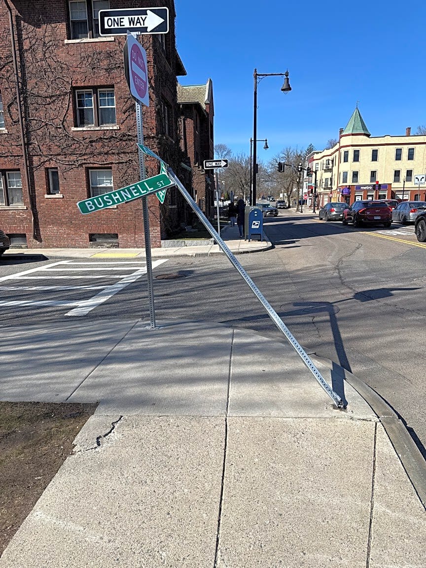 Intersection Of Bushnell St And Ashmont St, Dorchester, MaDamaged street sign