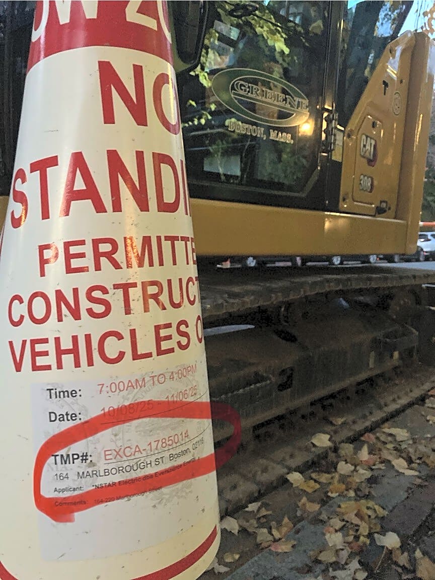 Greene Construction has left a digger parked on the street outside 184 Marlborough Street. This digger is occupying several resident spots without a permit. The permit posted is exclusively for 164 Marlborough street not 184. Please tow this Un-permitted vehicle so residents can use the spaces it is occupying.