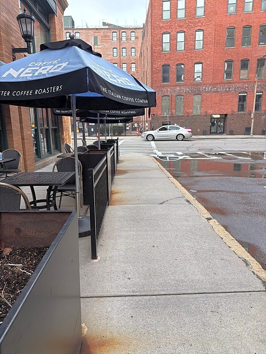 Intersection Of Thomson Pl And Congress St, Boston, MaUmbrellas, overhanging pedestrian walkway that are too low