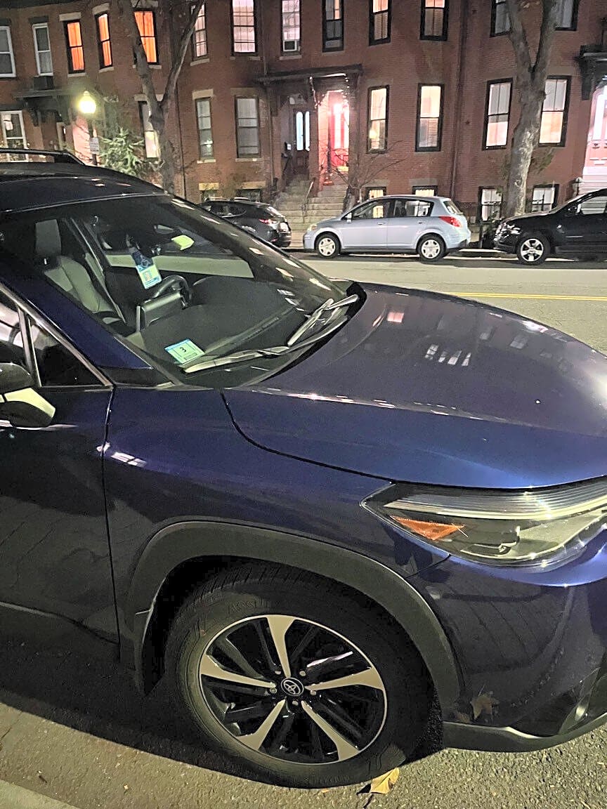 Intersection Of Wallingford Rd And Commonwealth Ave, Brighton, MaTesla cyber truck parked in crosswalk