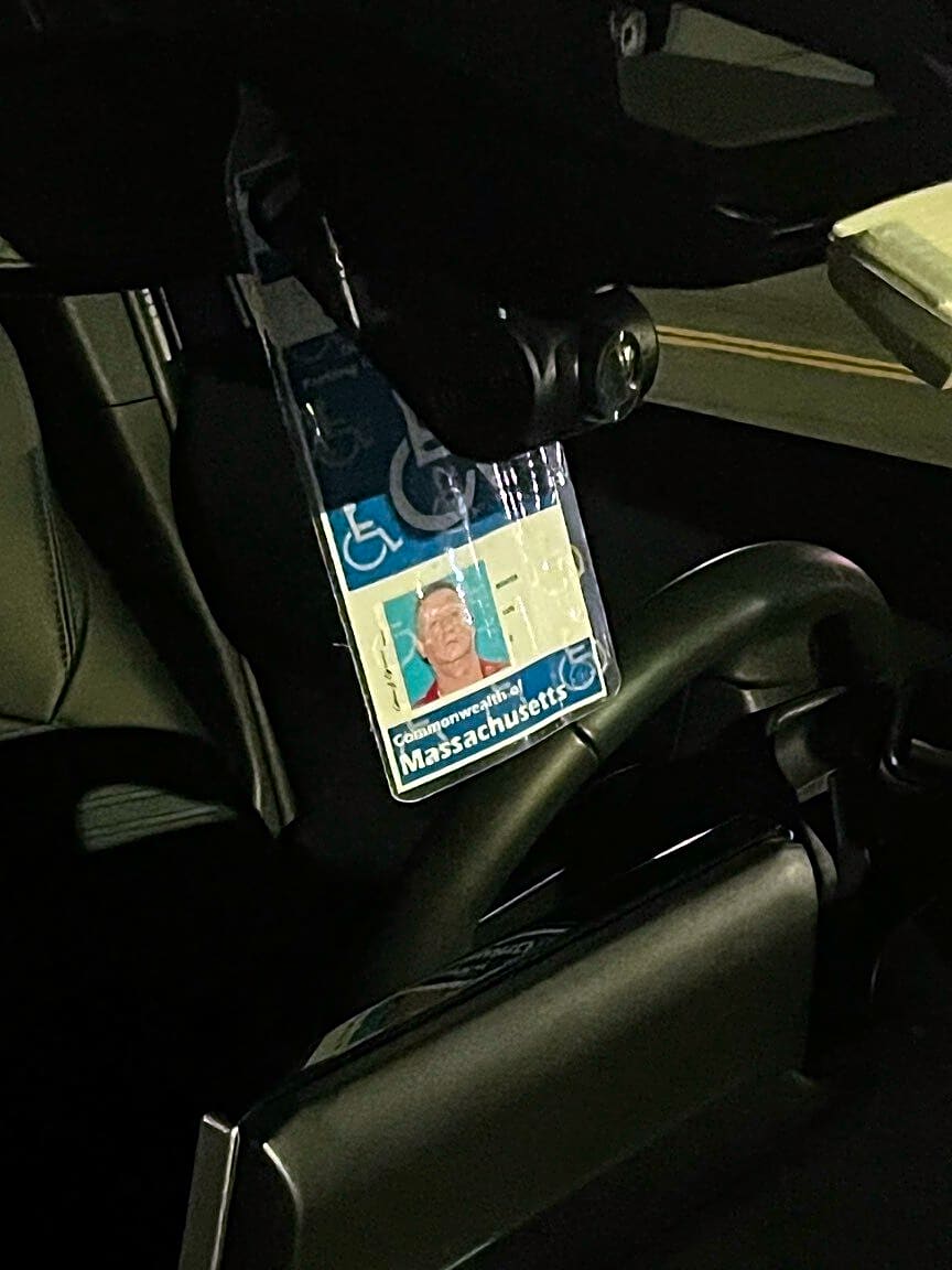 74 Warren Ave, Boston, Ma, 02116a blue toyota license plate attached is parked in front of a handicap ramp in front of the mckinley school by 70 Warren Avenue 02116 in the south end, using a handicap placard to justify parking there. this happens often, by other cars. can a sign be put up here to remind this parking is illegal?
