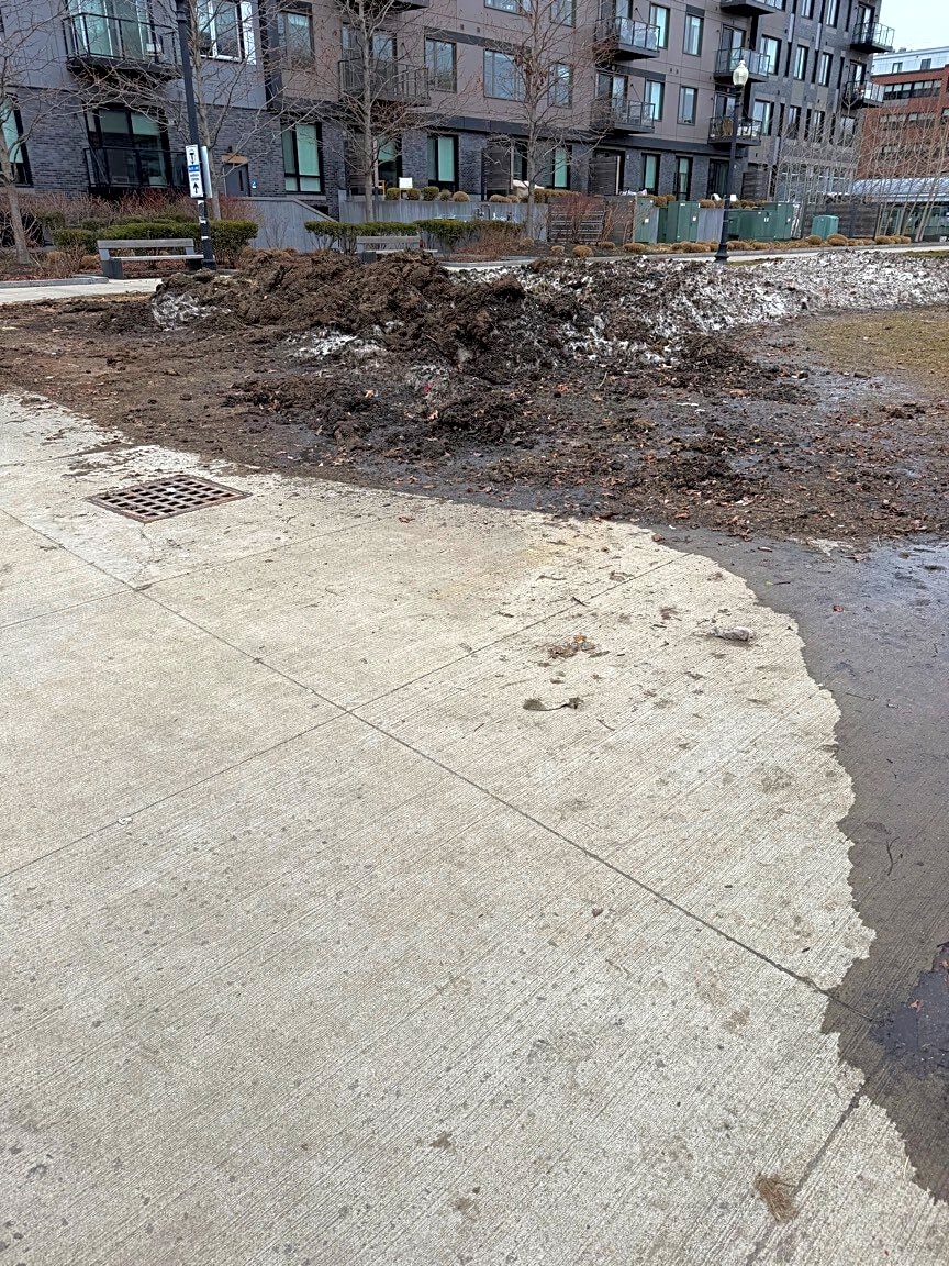 364 366 Hanover St, Boston, Ma, 02113Broken tree guards from snow plows, danger, sharp points out.