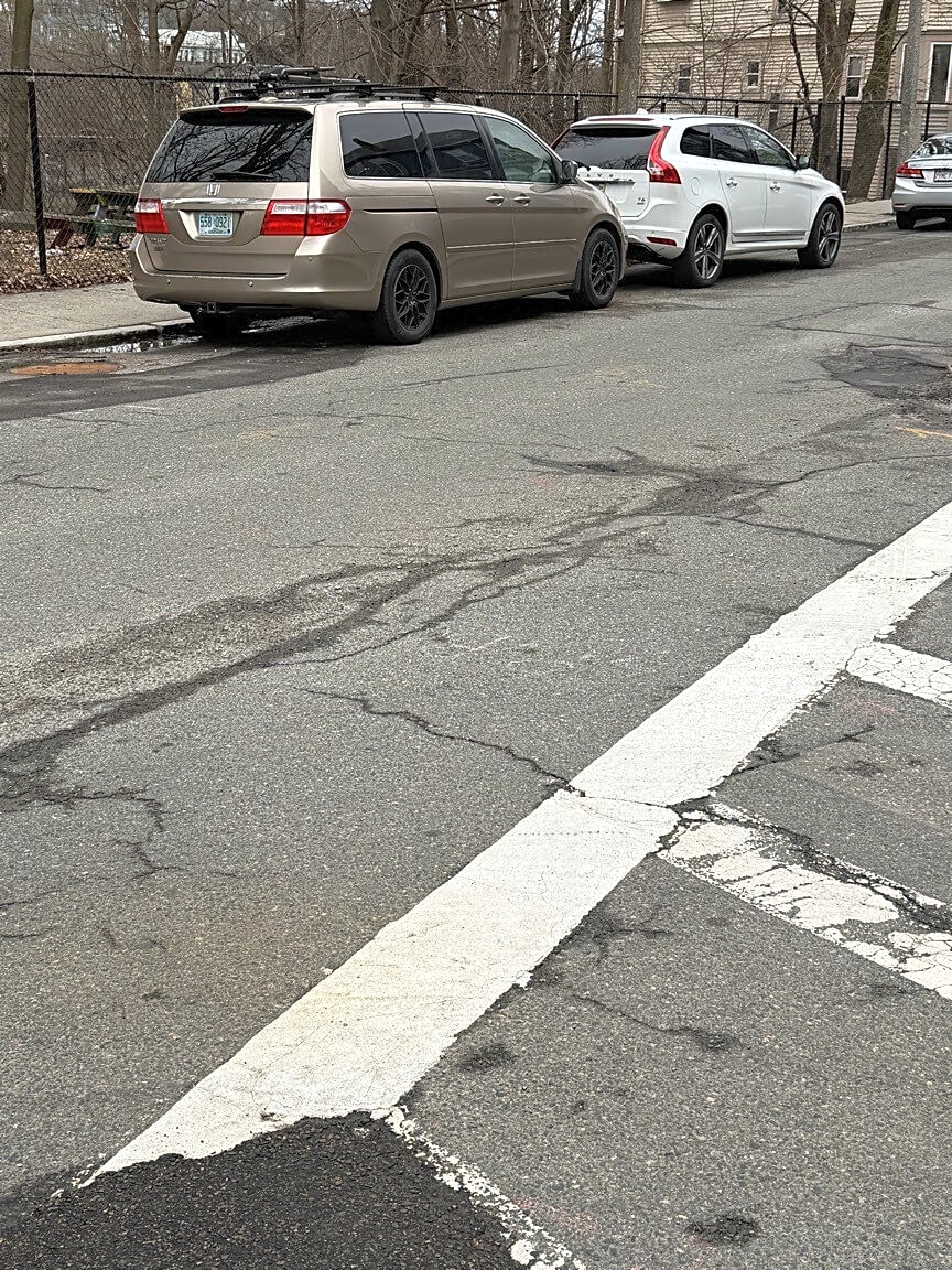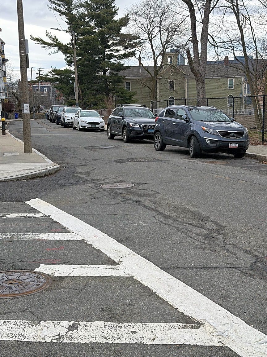 Intersection Of Hillside St And Parker St, Mission Hill, MaOut of State motor vehicles parked overnight, currently in a 2hr parking limit @ 8:15 an