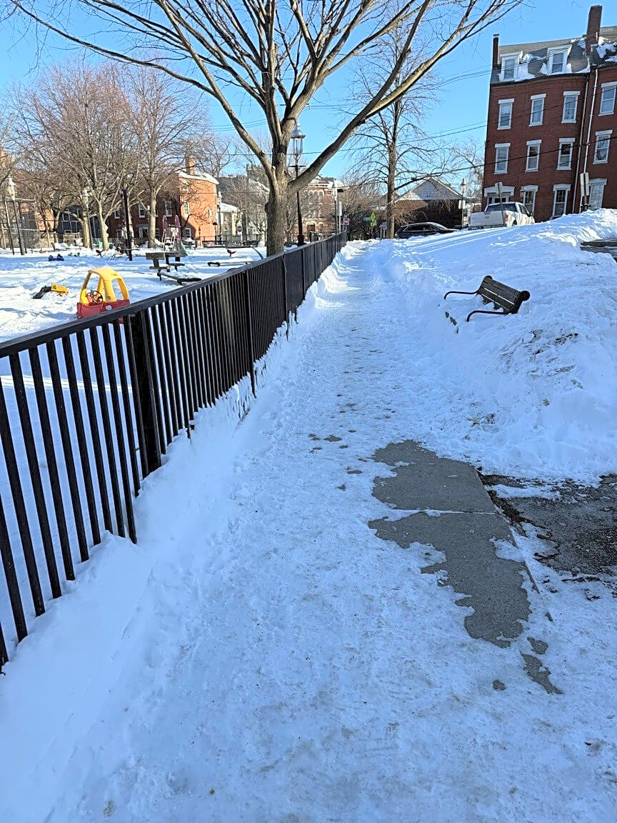34 Union St, Charlestown, Ma, 02129Snow not shoveled next to Peter Looney Park in Charlestown