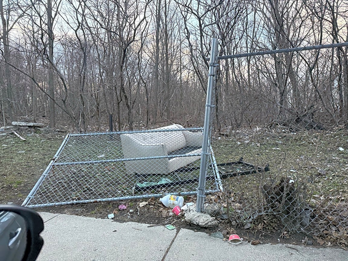 Intersection Of Thornton Pl And Thornton St, Roxbury, MaSomeone broke down the fence to dump a couch in the lot.