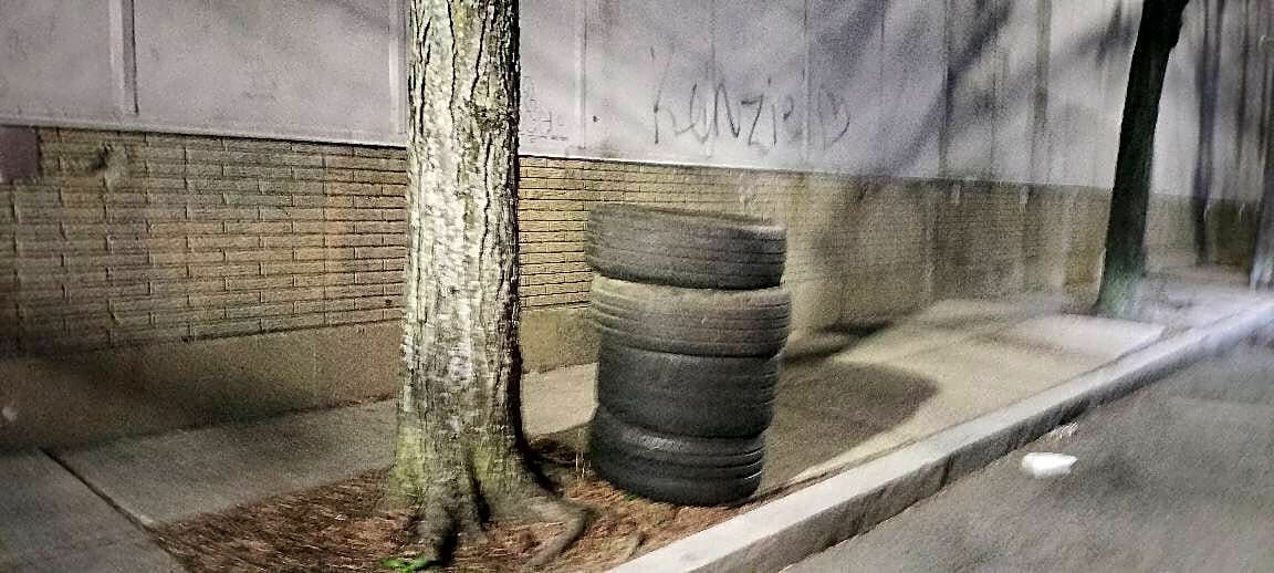 35 Pompeii St, Roxbury, Ma, 02119Four tires left on sidewalk