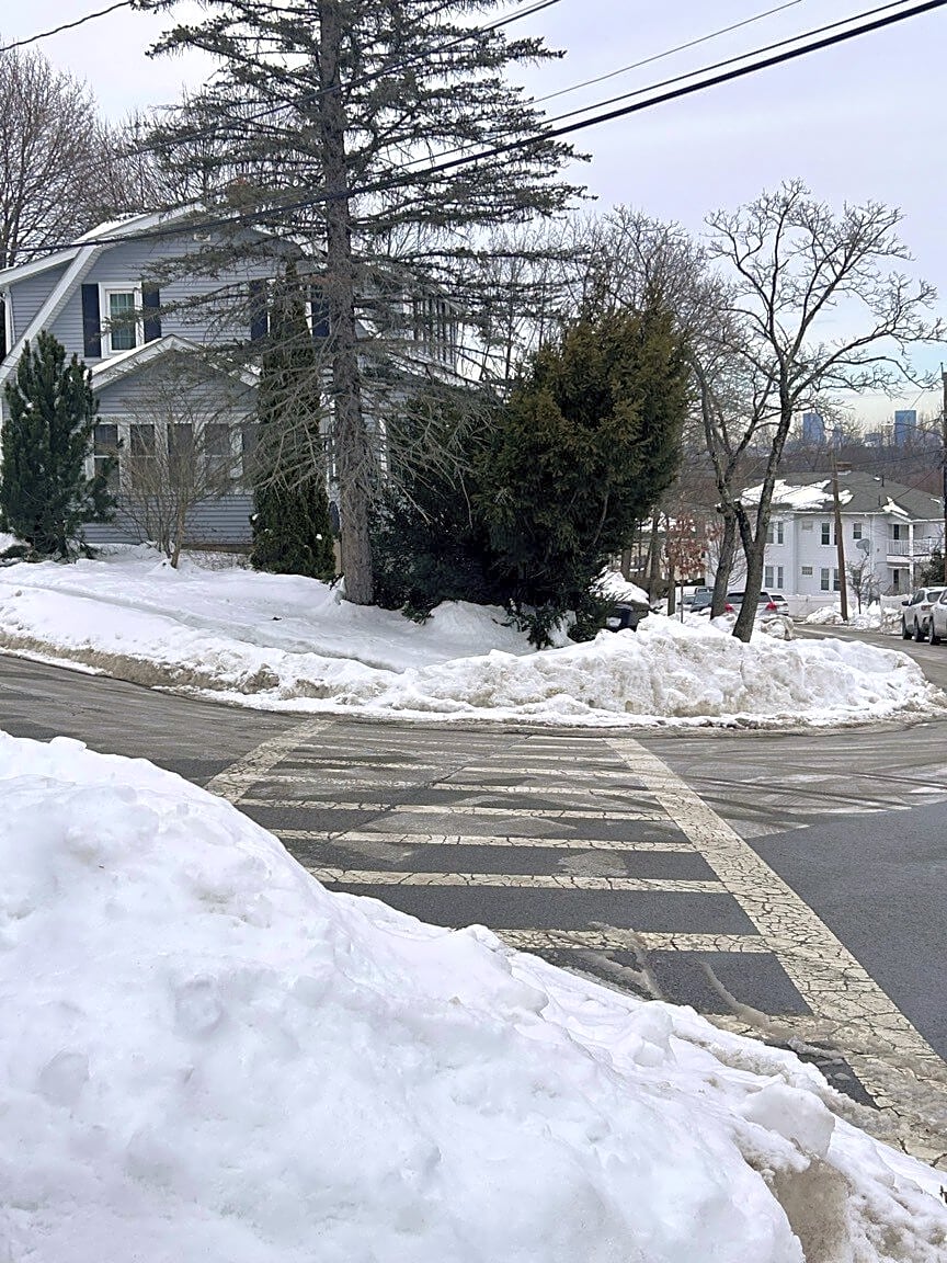 Intersection Of Alpheus Rd And Jeffers St, Roslindale, MaCurb cut not shoveled