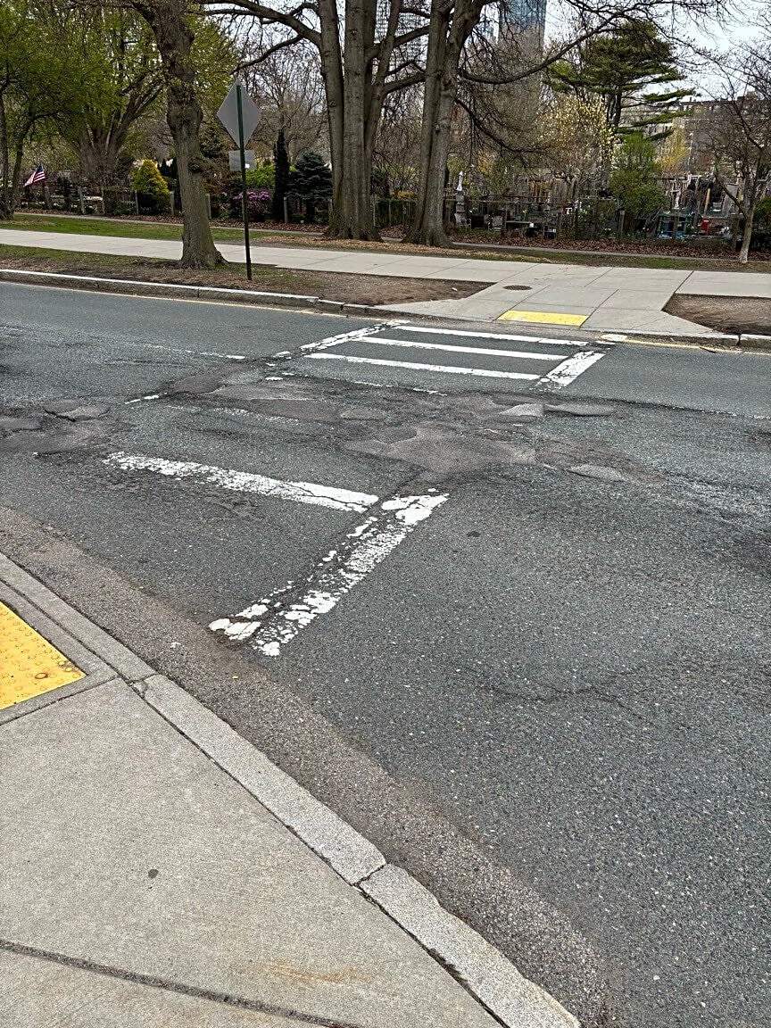 Intersection Of Peterborough St And Park Dr, Boston, MaCrosswalk needs to be repainted. Intersection of Peterborough and Park Drive near Victory Gardens.